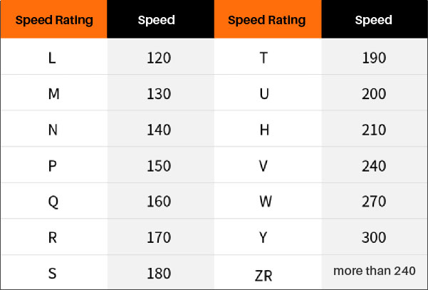 The speed symbol “W” – indicating the maximum permissible speed. In this case, the tyre is W-rated, i.e. approved for speeds of up to 270 km/h. A tyre’s certified speed rating is given a letter from A to Z. The higher the speed rating, the better control and handling you’ll have at higher speeds. Check out for the rating system (see below).